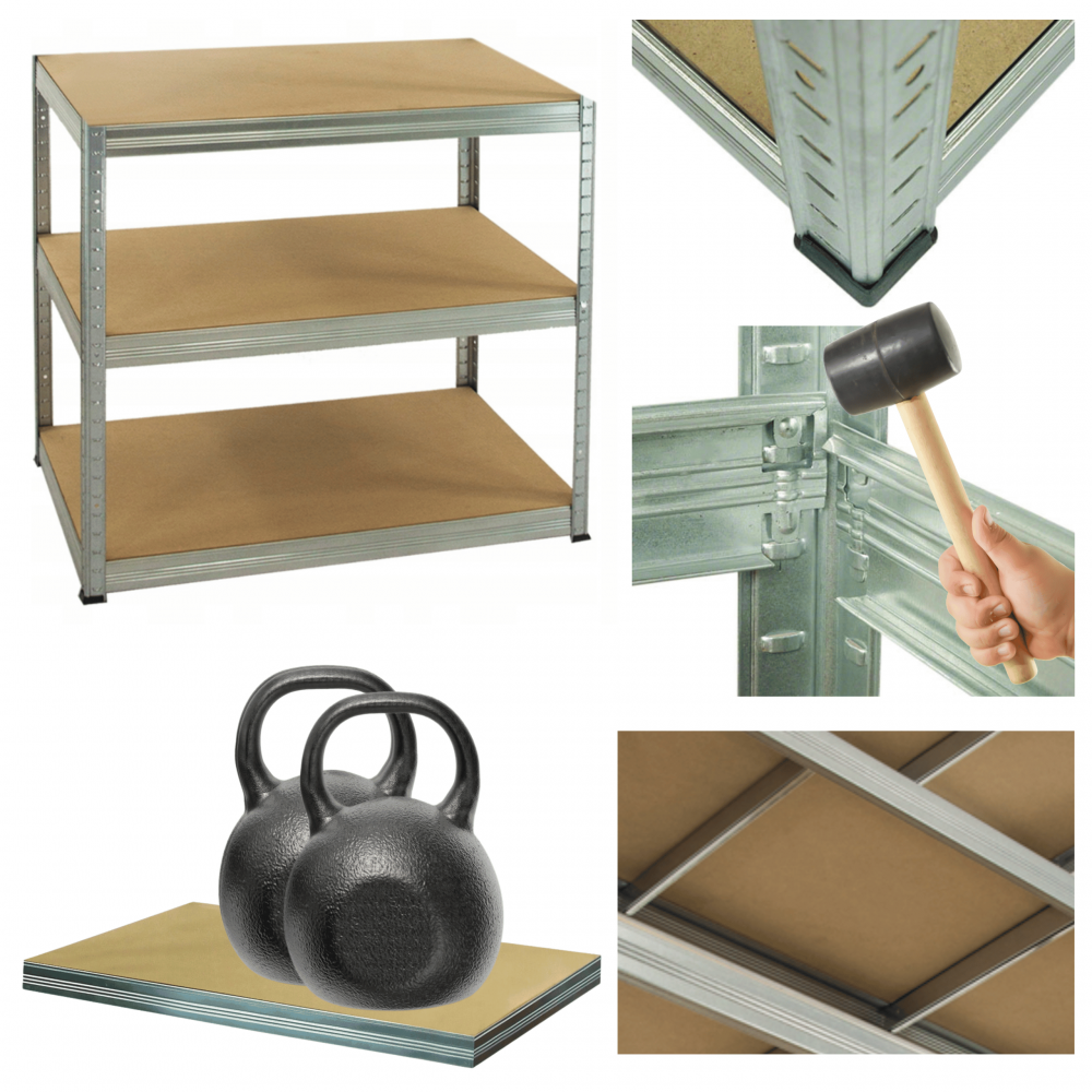 - Nośność na 1 półkę: 275 kg (aby otrzymać udźwig całego regału pomnóż ilość półek razy nośność jednej półki, cały regał może mieć nośność aż 2400kg!)