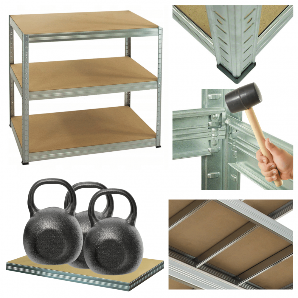 - Nośność na 1 półkę: 350 kg (aby otrzymać udźwig całego regału pomnóż ilość półek razy nośność jednej półki, cały regał może mieć nośność aż 2400kg!)