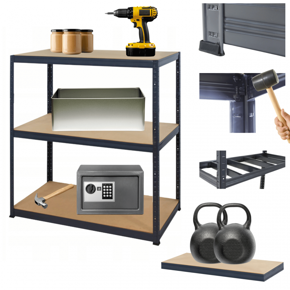 - Nośność na 1 półkę: 275 kg (aby otrzymać udźwig całego regału pomnóż ilość półek razy nośność jednej półki, cały regał może mieć nośność aż 2400kg!)