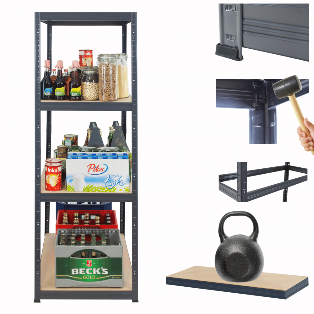 - Nośność na 1 półkę: 175 kg (aby otrzymać udźwig całego regału pomnóż ilość półek razy nośność jednej półki, cały regał może mieć nośność aż 2400kg!)
