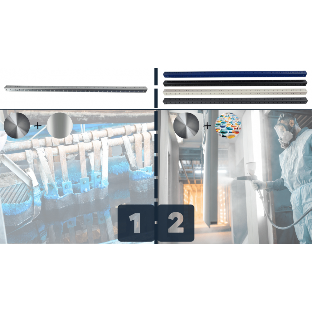 1. Zastosowaliśmy cynkowanie galwaniczne w przypadku regałów ocynkowanych - zanurzyliśmy stalowe profile w roztworze zawierającym sole cynku i poprowadziliśmy prąd. Reakcja elektrochemiczna, która nastąpiła pokryła stal bazową warstwą cynku, tworząc na nim warstwę ochronną. W ten sposób uzyskaliśmy niezwykłą ochronę przed korozją, a przez co niesamowitą trwałość.