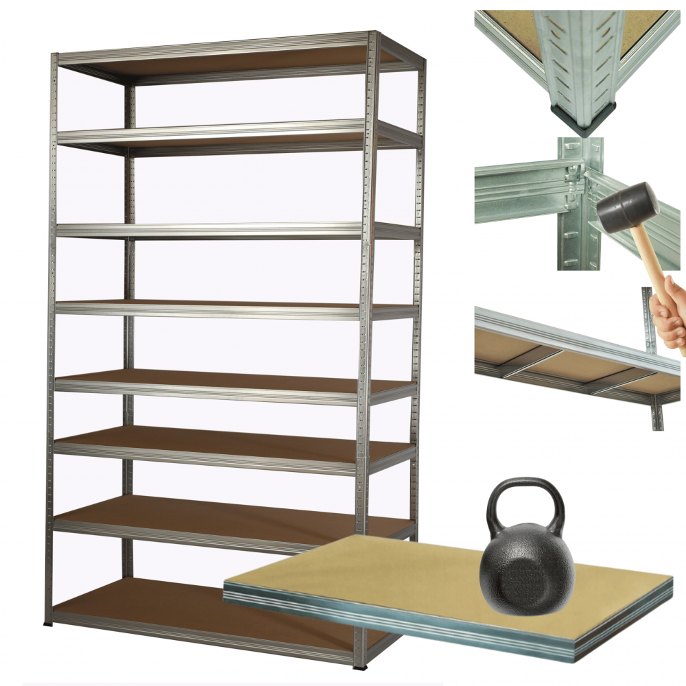 - Nośność na 1 półkę: 175 kg (aby otrzymać udźwig całego regału pomnóż ilość półek razy nośność jednej półki, cały regał może mieć nośność aż 2400kg!)