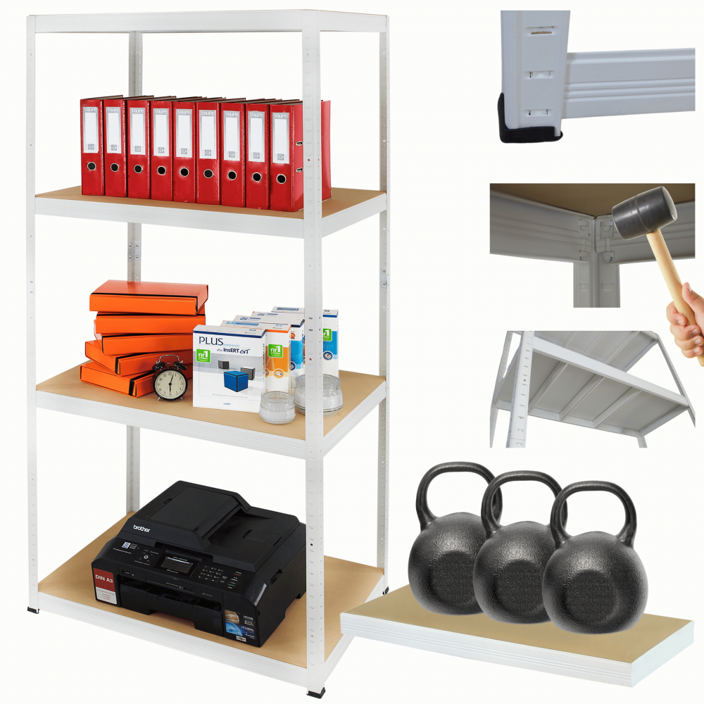 - Nośność na 1 półkę: 350 kg (aby otrzymać udźwig całego regału pomnóż ilość półek razy nośność jednej półki, cały regał może mieć nośność aż 2400kg!)