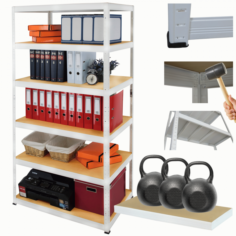- Nośność na 1 półkę: 350 kg (aby otrzymać udźwig całego regału pomnóż ilość półek razy nośność jednej półki, cały regał może mieć nośność aż 2400kg!)