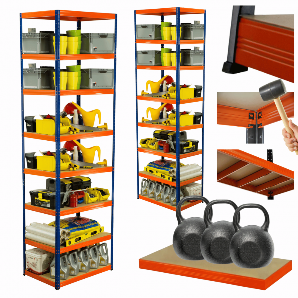 - Nośność na 1 półkę: 350 kg (aby otrzymać udźwig całego regału pomnóż ilość półek razy nośność jednej półki, cały regał może mieć nośność aż 2400kg!)