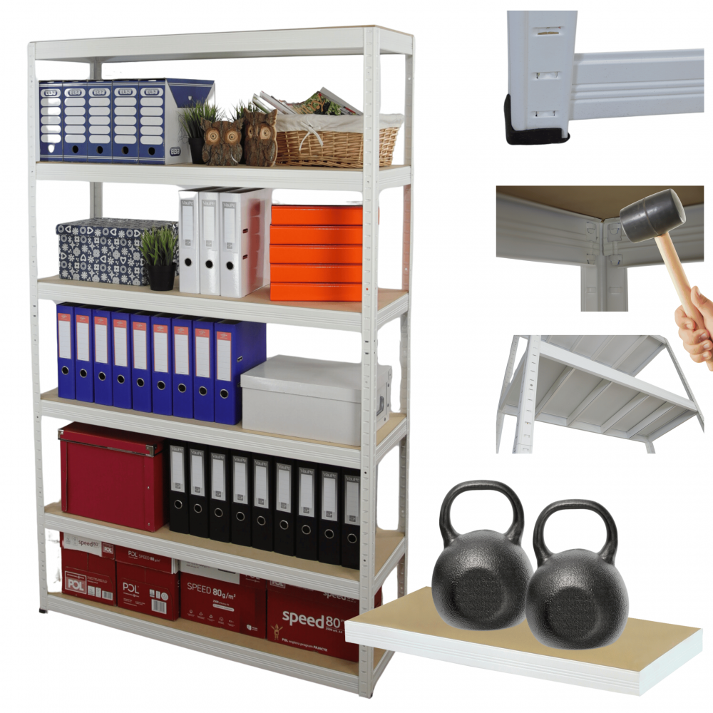 - Nośność na 1 półkę: 275 kg (aby otrzymać udźwig całego regału pomnóż ilość półek razy nośność jednej półki, cały regał może mieć nośność aż 2400kg!)