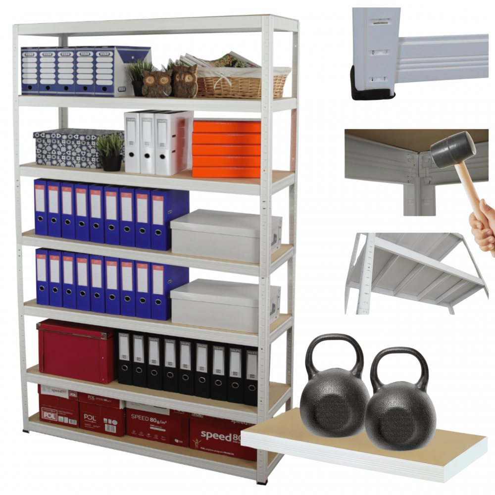 - Nośność na 1 półkę: 275 kg (aby otrzymać udźwig całego regału pomnóż ilość półek razy nośność jednej półki, cały regał może mieć nośność aż 2400kg!)