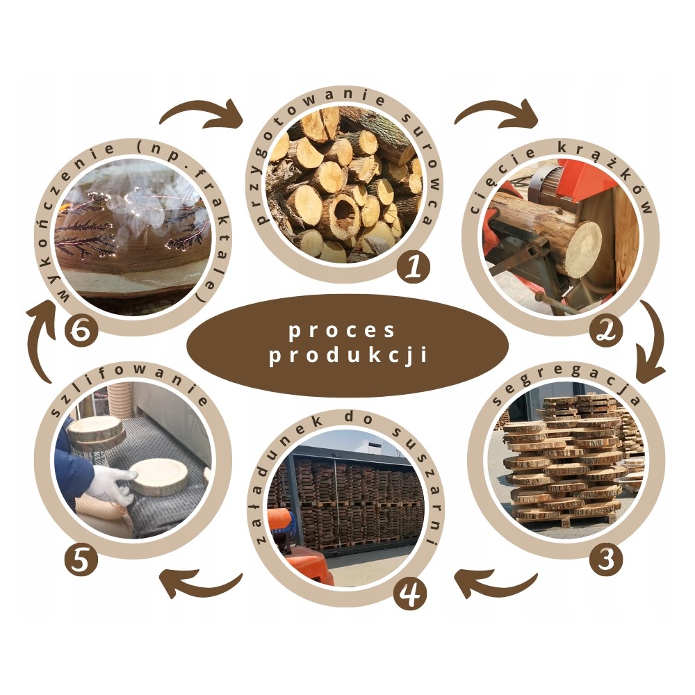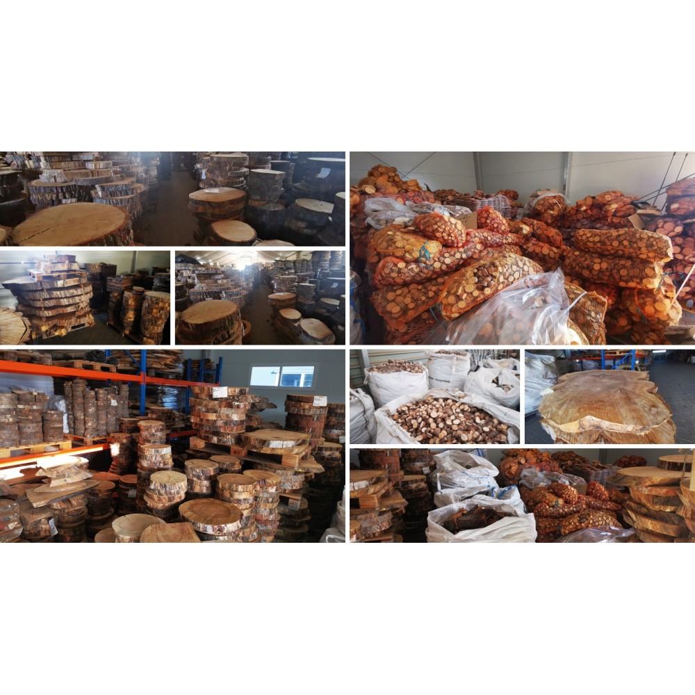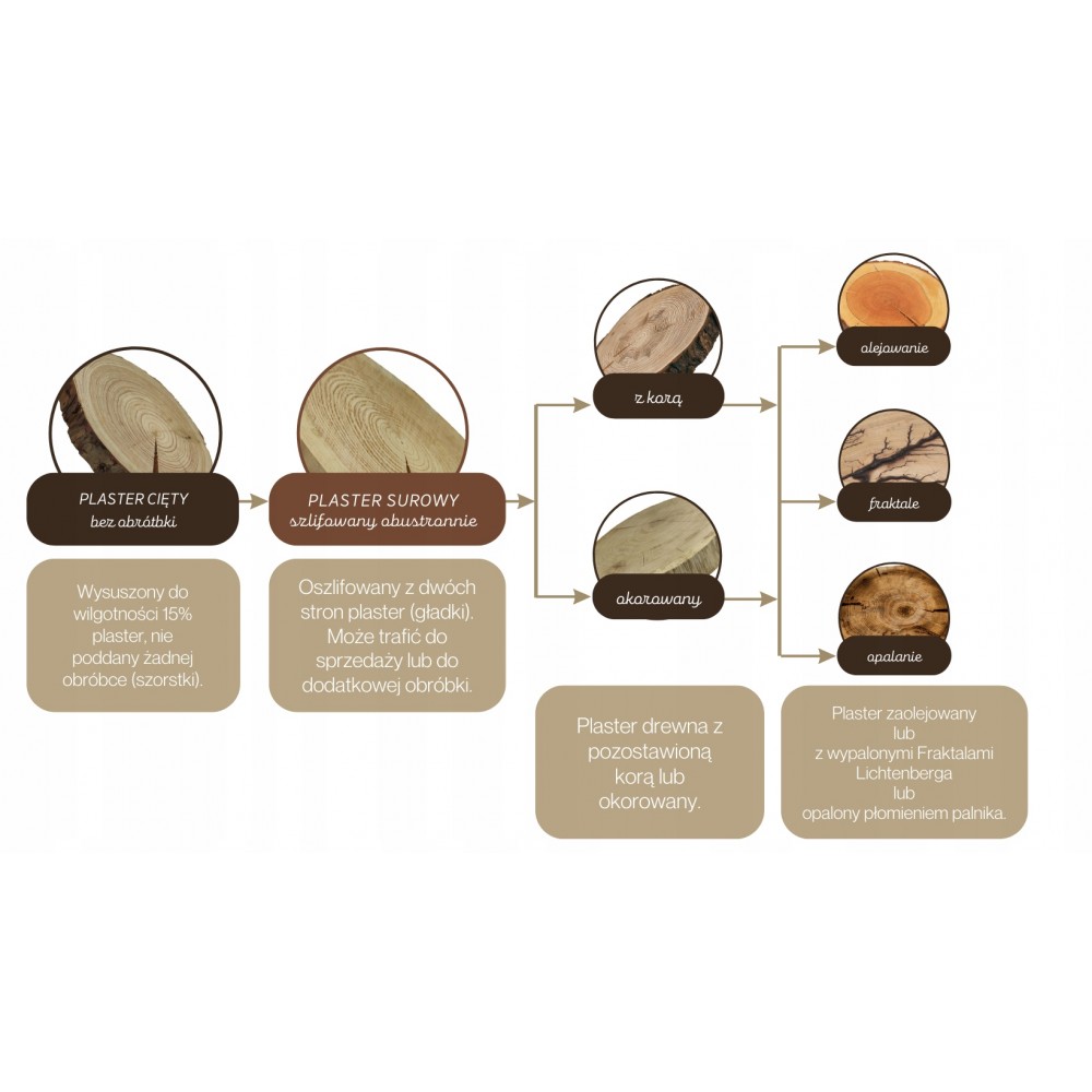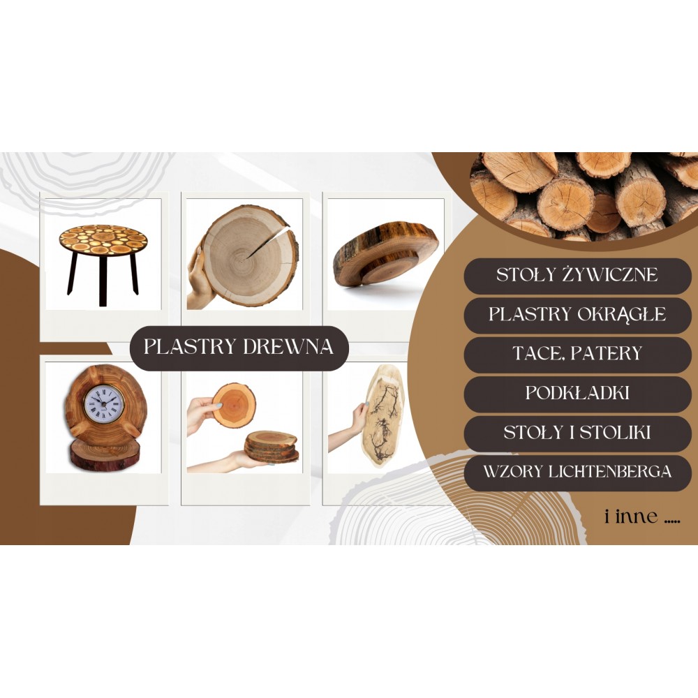 Oferujemy szeroki asortyment drewnianych plastrów z rozmaitych gatunków drzew, jak również gotowe produkty i realizacje.
