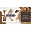 7 gatunków drewna: wiąz, dąb, akacja, czeremcha, topola, modrzew, sosna.