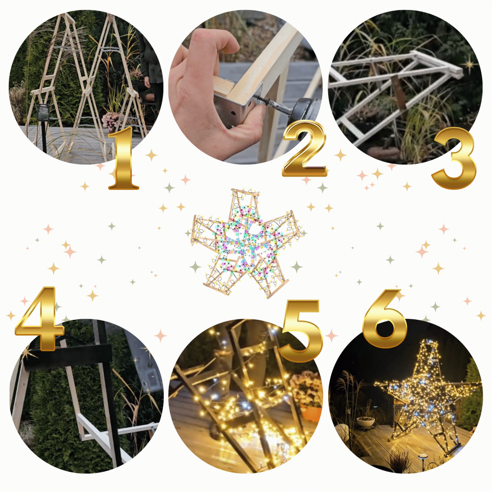 ✨ Przygotuj wcześniej zakupione drewniane koziołki i wszystkie elementy potrzebne do montażu gwiazdy.