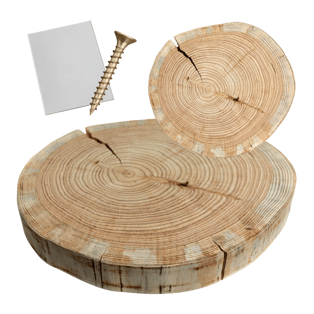 ➡️ Duży krążek drewna (30-35 cm średnicy, 4-5 cm grubości)