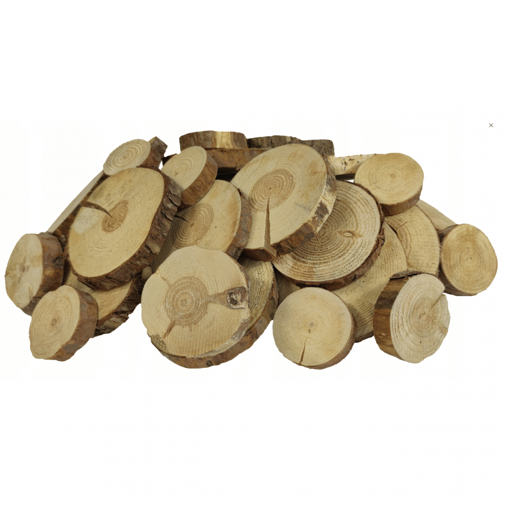 ➡️ Każdy zestaw zawiera 25 sztuk plastrów o średnicach od 10 do 25 cm, wykonanych z wysokiej jakości drewna iglastego.