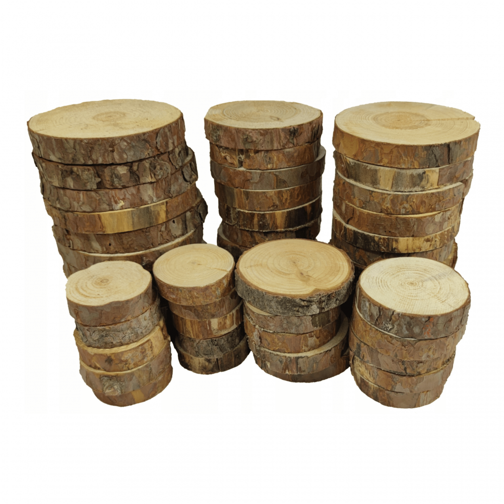 Zestaw plastrów drewna 50szt MIX iglaste plastry drewna krążki ECO 10-25cm