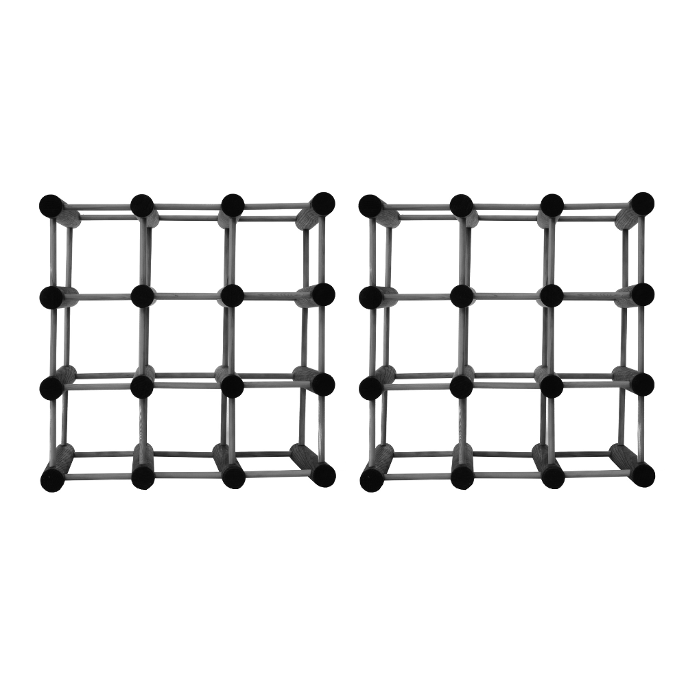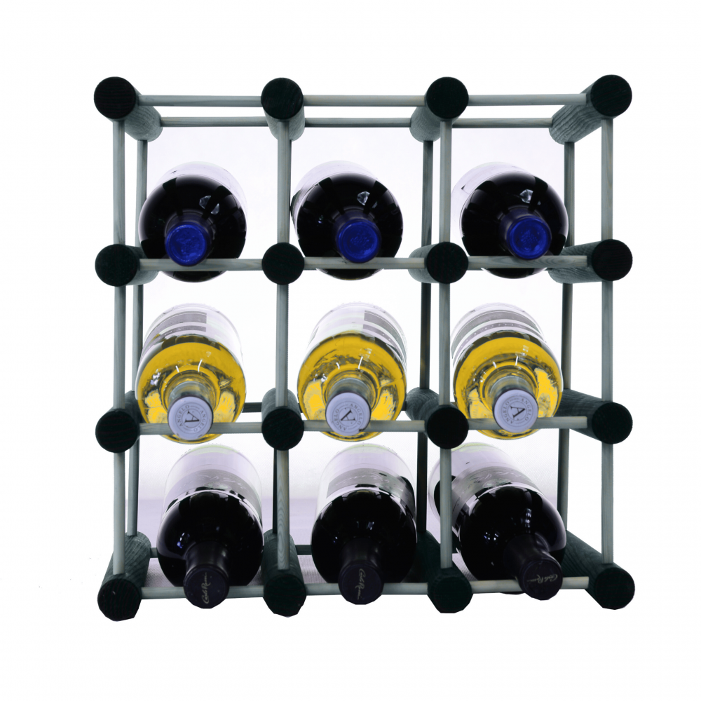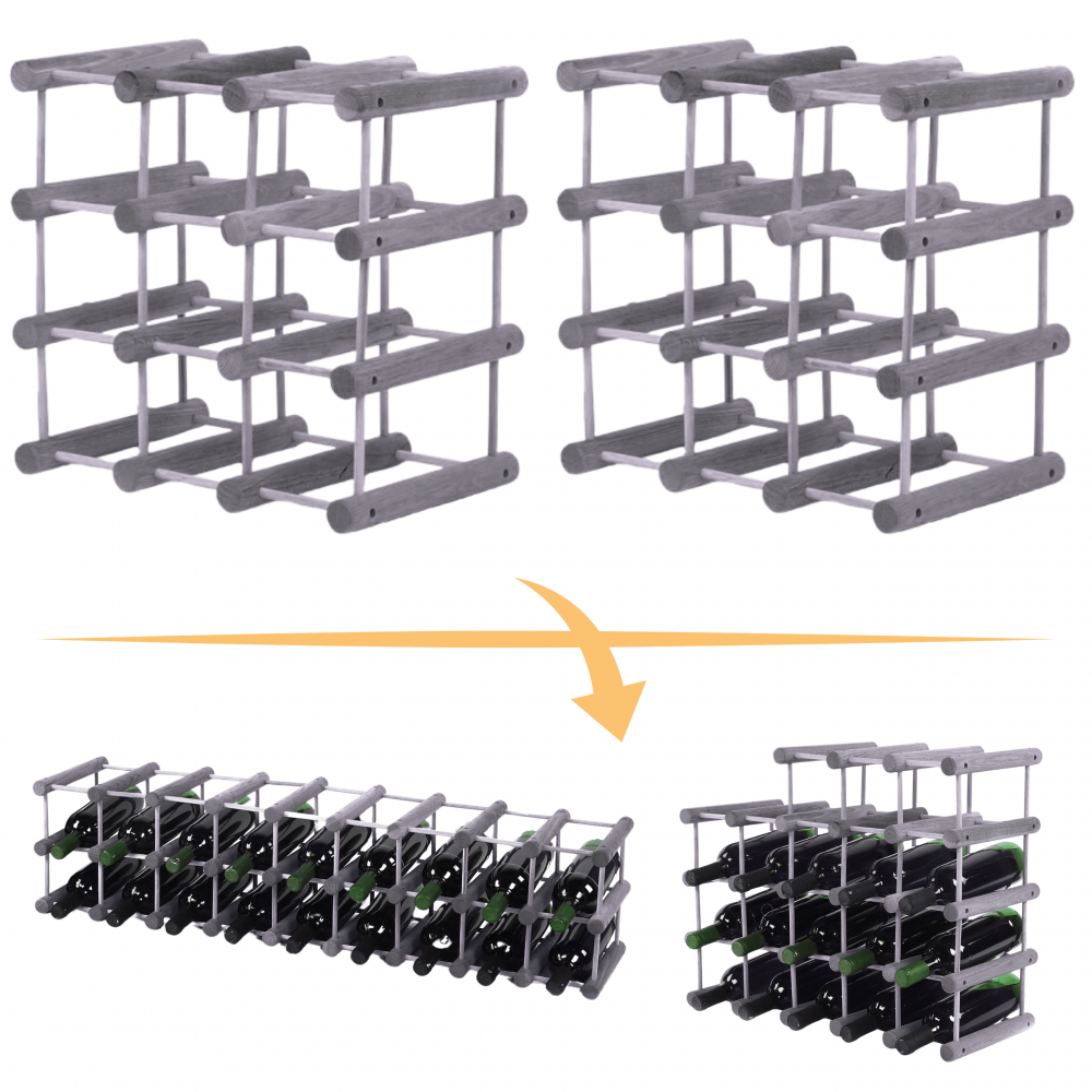 Modułowe regały na butelki zbudowane z drążków sosnowych lub dębowych – stojaki na wino i napoje