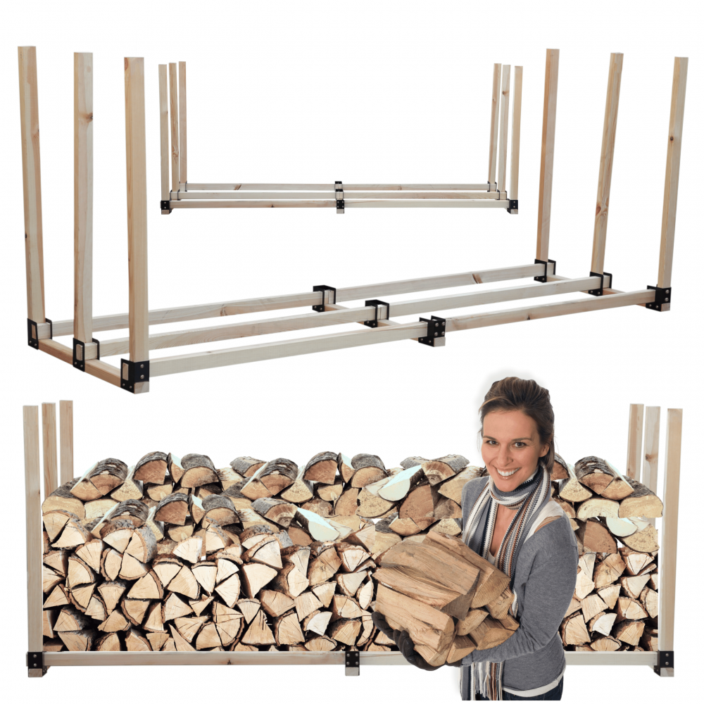 ✅ Trwałość na lata – drewniane belki wzmocnione metalowymi łącznikami gwarantują stabilność, wytrzymałość i odporność na duże obciążenia, co sprawia, że stojak pomieści nawet duże ilości drewna.