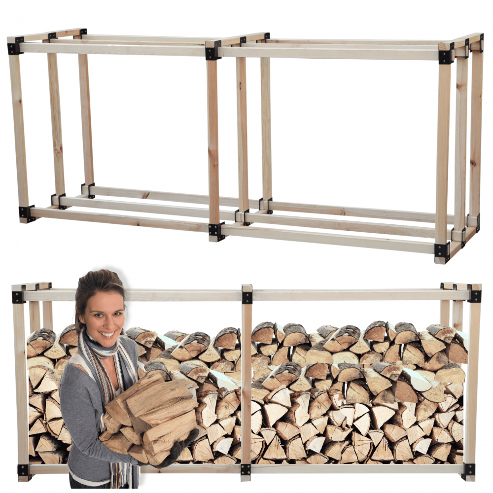 ✅ Trwałość na lata – drewniane belki wzmocnione metalowymi łącznikami gwarantują stabilność, wytrzymałość i odporność na duże obciążenia, co sprawia, że stojak pomieści nawet duże ilości drewna.