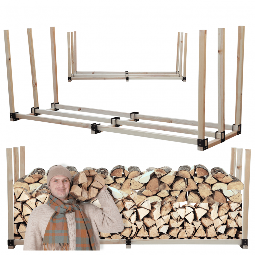 ✅ Trwałość na lata – drewniane belki wzmocnione metalowymi łącznikami gwarantują stabilność, wytrzymałość i odporność na duże obciążenia, co sprawia, że stojak pomieści nawet duże ilości drewna.