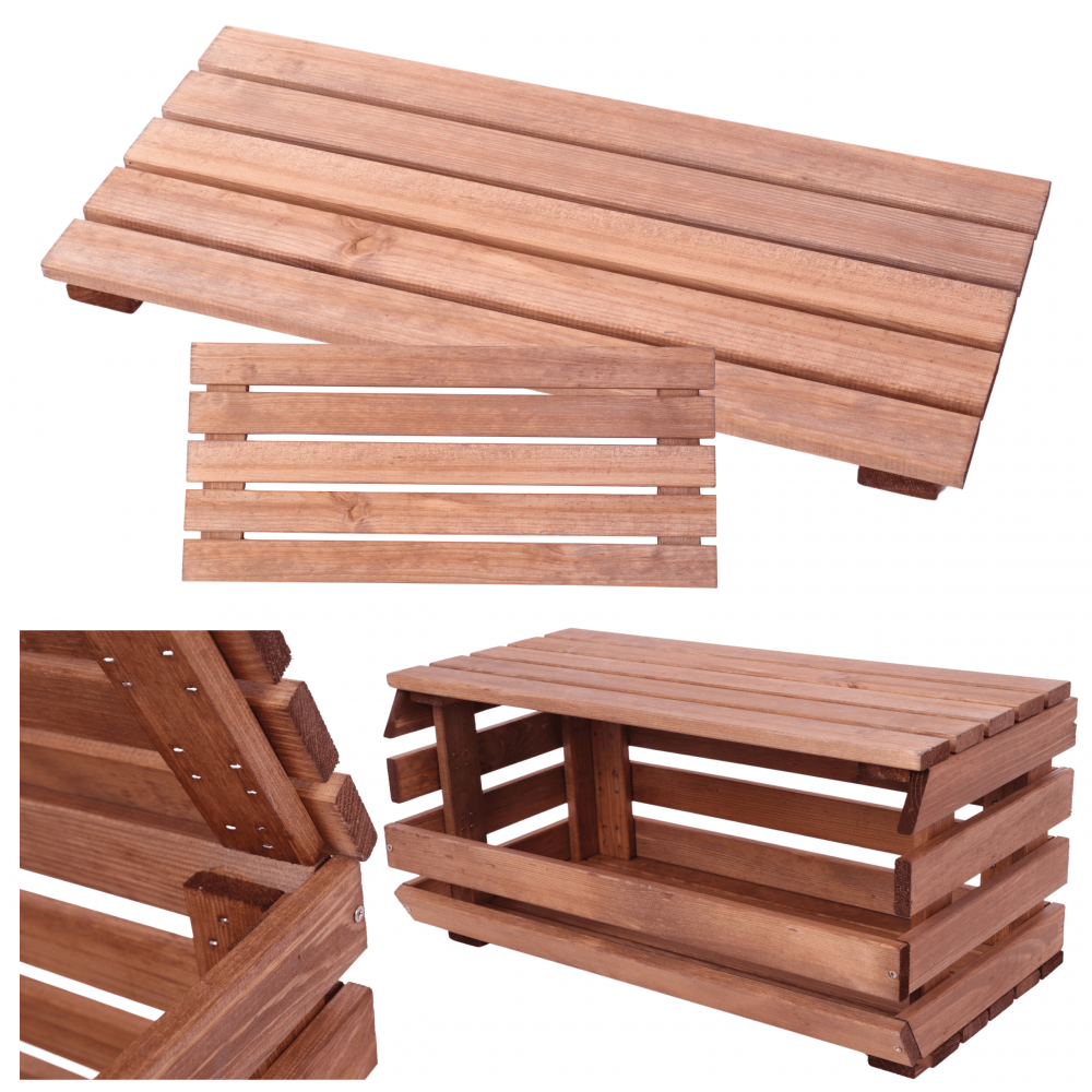➡️ Drewniana półka i pokrywa w jednym – Montowana na najwyższą skrzynię z kolekcji RAWA.