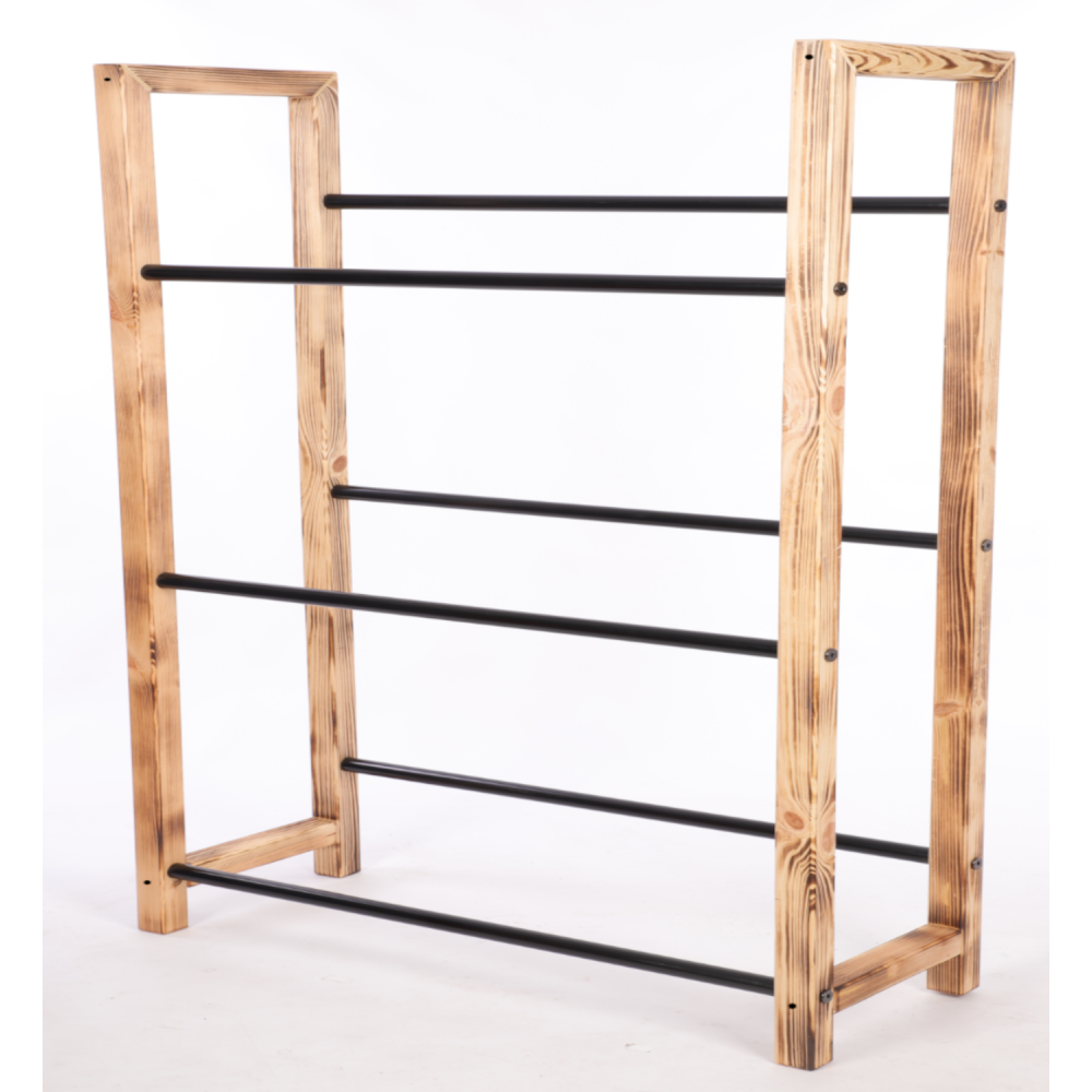 - Pachnące naturalne drewno sosnowe w połączeniu z czarnymi metalowymi drążkami.