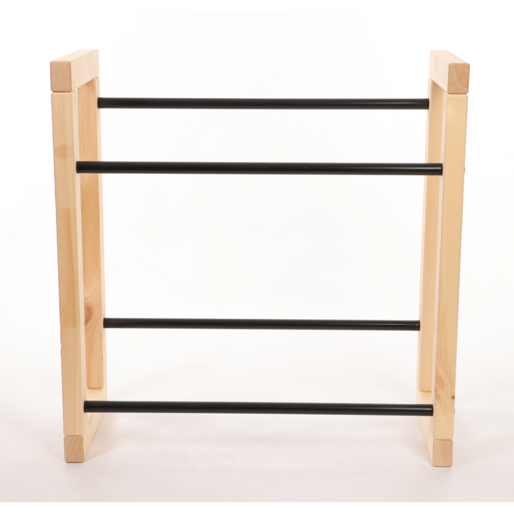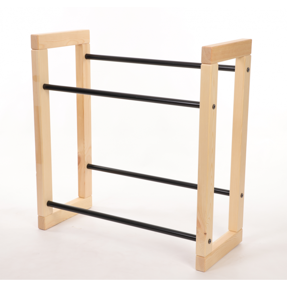 - Drewniany stojak ekspozycyjny z metalowymi drążkami - dla lepszej stabilności.
