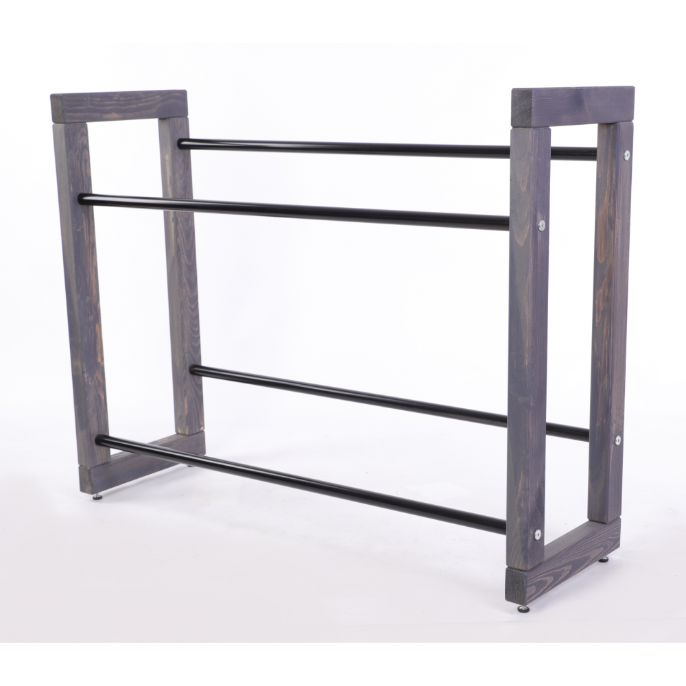 - Drewniany stojak ekspozycyjny z metalowymi drążkami - dla lepszej stabilności.