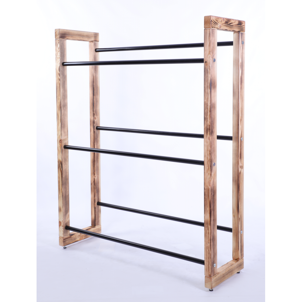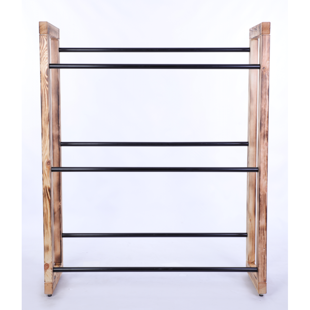 - Pachnące naturalne drewno sosnowe w połączeniu z czarnymi metalowymi drążkami.