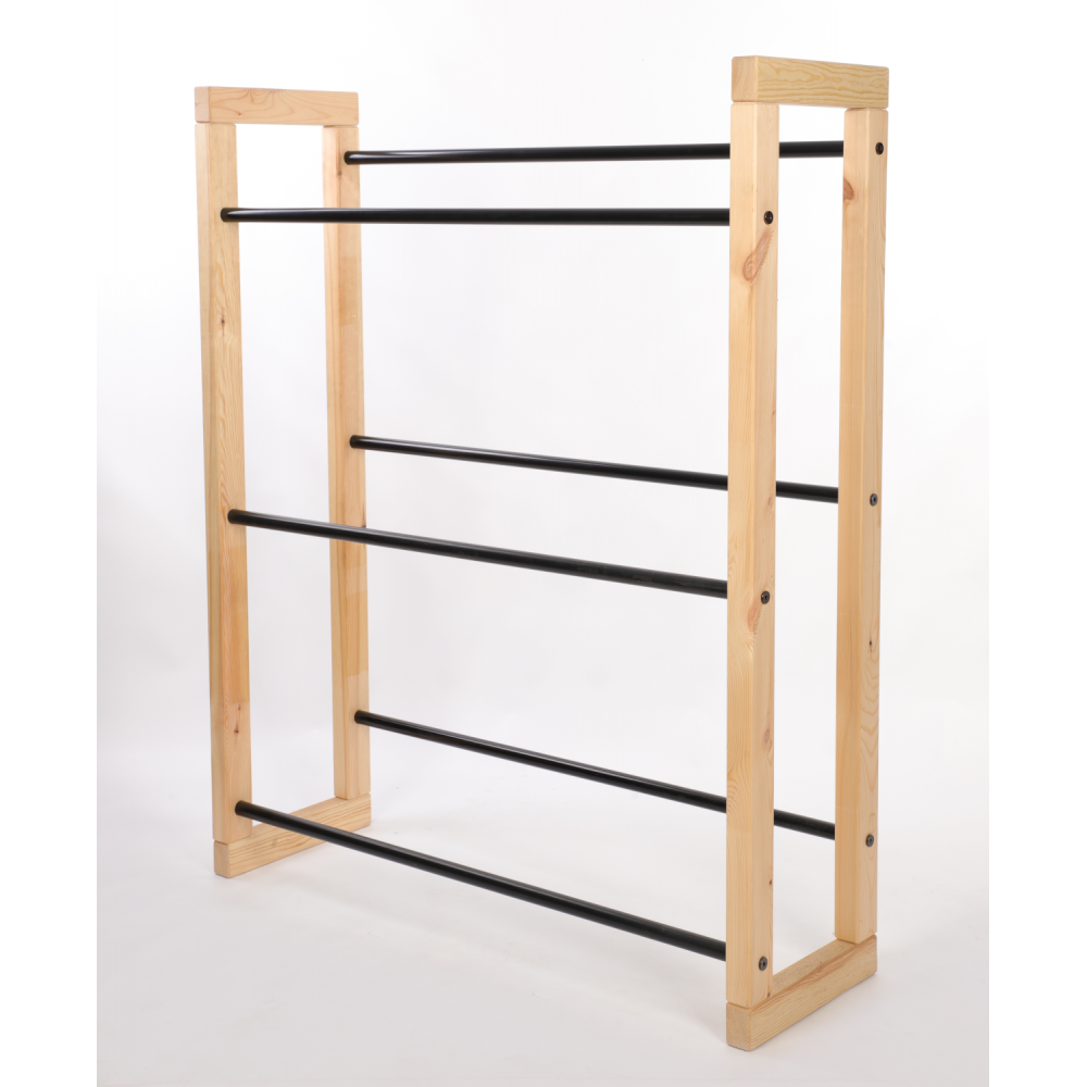 - Drewniany stojak ekspozycyjny z metalowymi drążkami - dla lepszej stabilności.