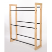 Drewniany stojak ekspozycyjny na skrzynki z metalowymi drążkami. Od polskiego producenta. Egzemplarz z bogatej kolekcji stojaków na skrzynki.