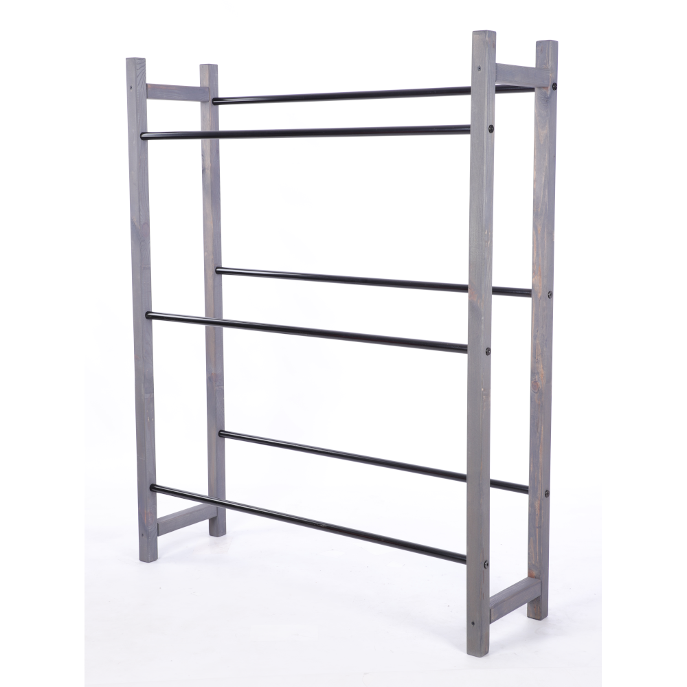 Dzięki metalowym drążkom nasz regał oferuje wyjątkową stabilność i nośność. Solidna konstrukcja pozwala na przechowywanie nawet ciężkich skrzynek, a drewno sosnowe zapewnia trwałość i długą żywotność produktu. Każda półka wytrzymuje obciążenie do 100 kg.