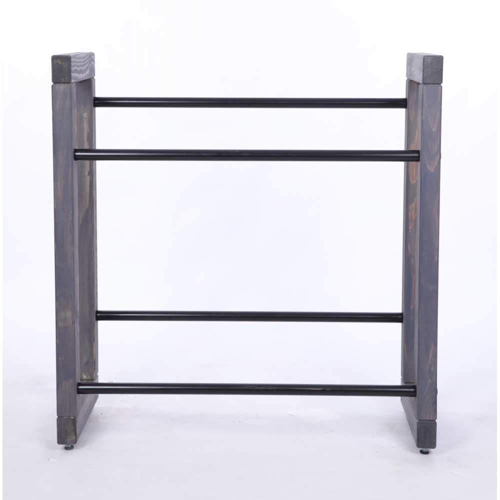 - Pachnące naturalne drewno sosnowe w połączeniu z czarnymi metalowymi drążkami.