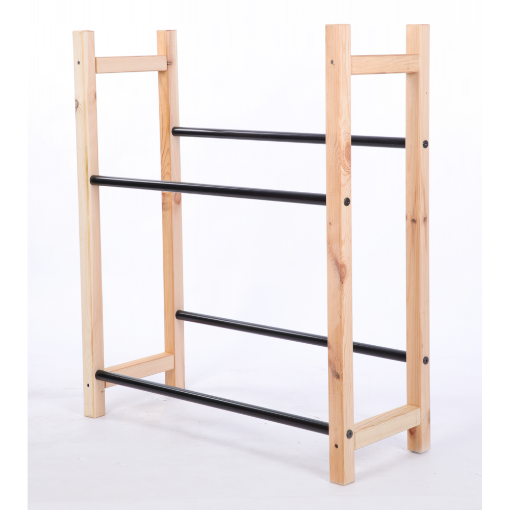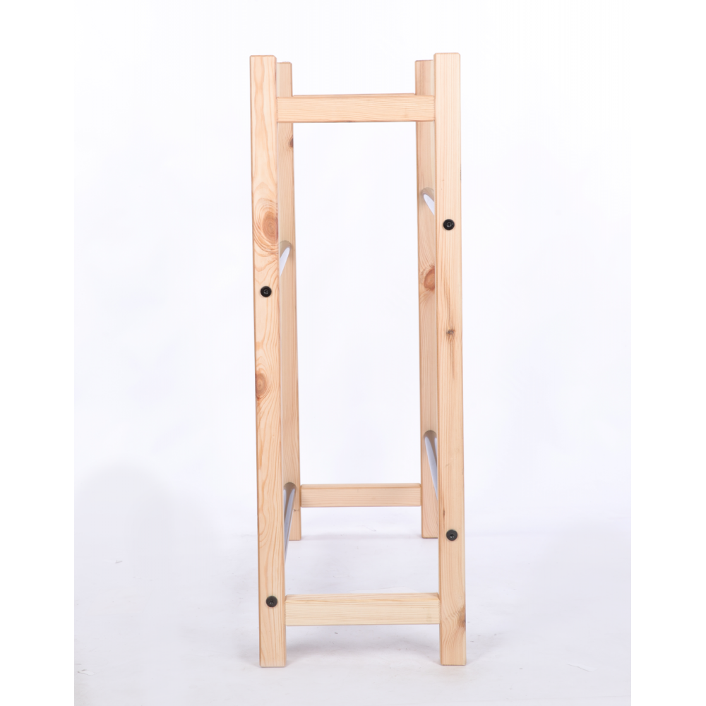 Dzięki metalowym drążkom nasz regał oferuje wyjątkową stabilność i nośność. Solidna konstrukcja pozwala na przechowywanie nawet ciężkich skrzynek, a drewno sosnowe zapewnia trwałość i długą żywotność produktu. Każda półka wytrzymuje obciążenie do 100 kg.