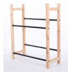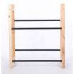 Regał wykonany jest z naturalnego drewna sosnowego, które w połączeniu z czarnymi metalowymi drążkami nadaje elegancki i nowoczesny wygląd.