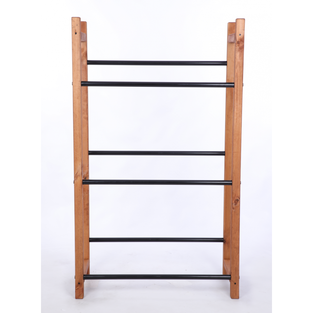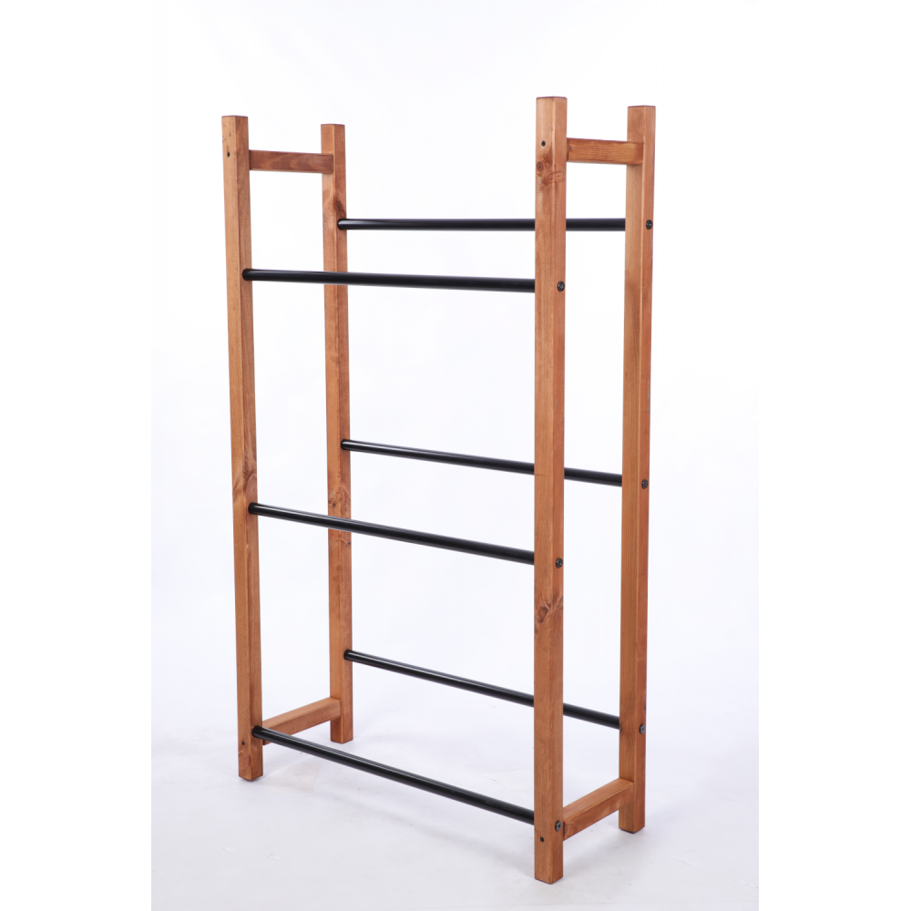 ➡️ Wykonany z pachnącego, naturalnego drewna sosnowego, połączonego z czarnymi metalowymi drążkami, które dodają elegancji i funkcjonalności.