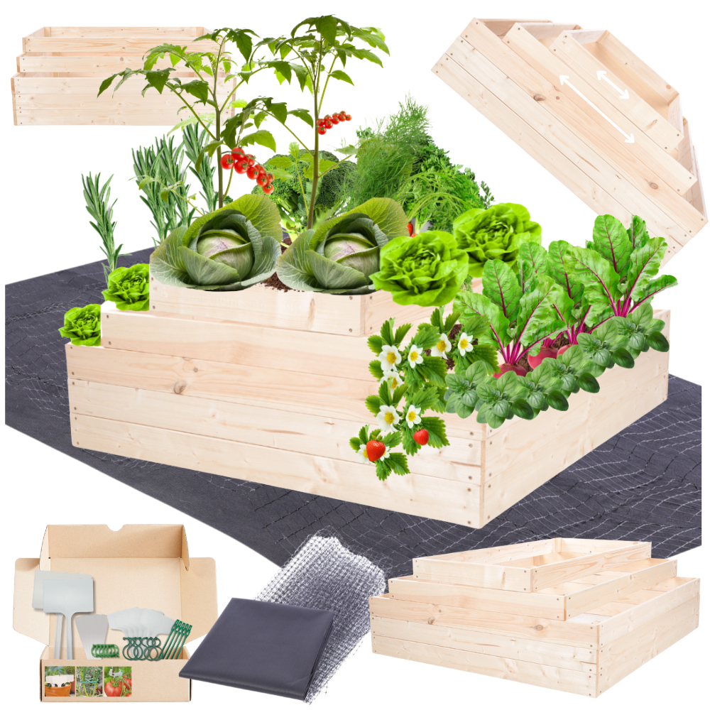 Drewniana kaskadowa REGULOWANA skrzynia na warzywniak - ZESTAW OGRODNIKA GRATIS - zapoznaj się z olbrzymią ilością dostępnych kombinacji bezpośrednio od polskiego producenta!