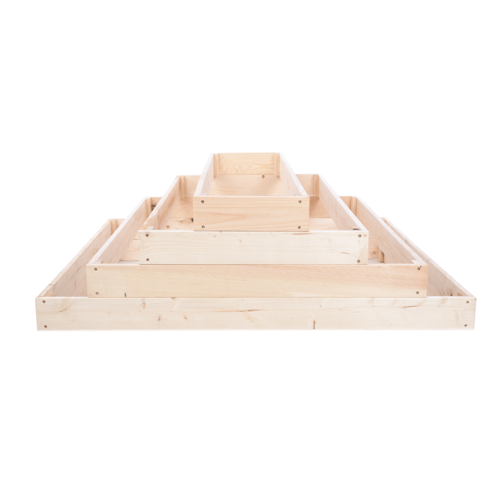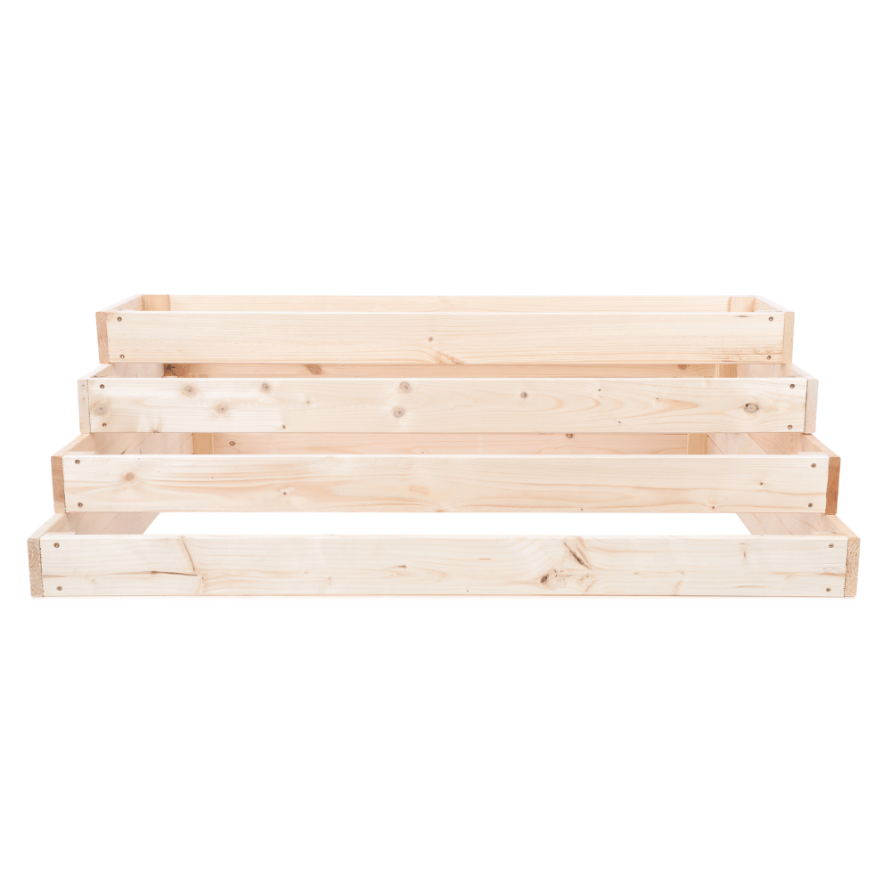 Oferujemy skrzynie na warzywa w różnych wysokościach (9, 18, 27, 36, 45, 54 cm), a także grządki z podziałem, kaskadowe – zwykłe i narożne oraz kaskadowe z regulowanymi piętrami. Wszystkie dostępne w czterech kolorach – naturalnym, przezroczystym, brązowym i szarym.