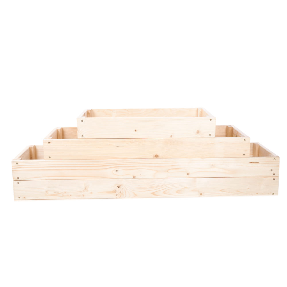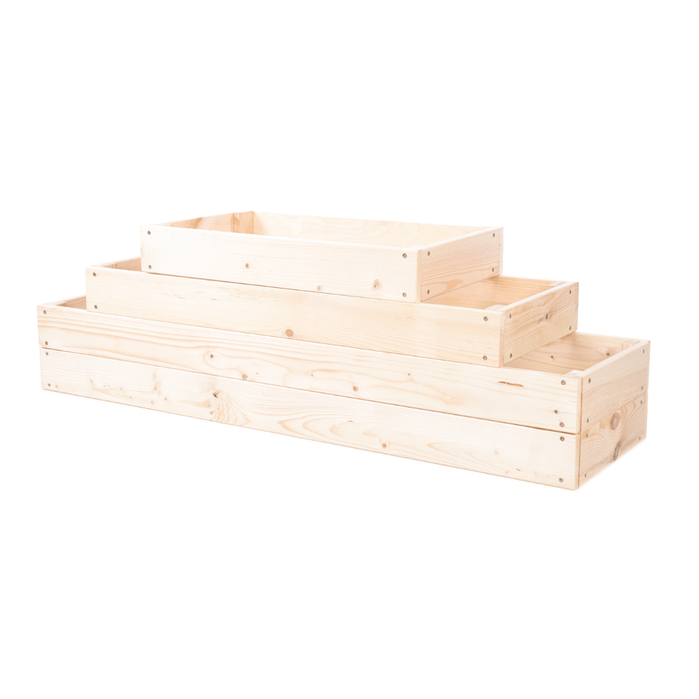 Oferujemy skrzynie na warzywa w różnych wysokościach (9, 18, 27, 36, 45, 54 cm), a także grządki z podziałem, kaskadowe – zwykłe i narożne oraz kaskadowe z regulowanymi piętrami. Wszystkie dostępne w czterech kolorach – naturalnym, przezroczystym, brązowym i szarym.