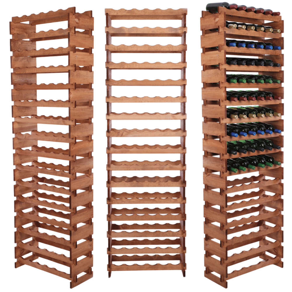 Modułowy drewniany stojak na butelki – polska produkcja, naturalne drewno, łatwy montaż bez narzędzi! Egzemplarz z najbogatszej kolekcji regałów tego typu na rynku.