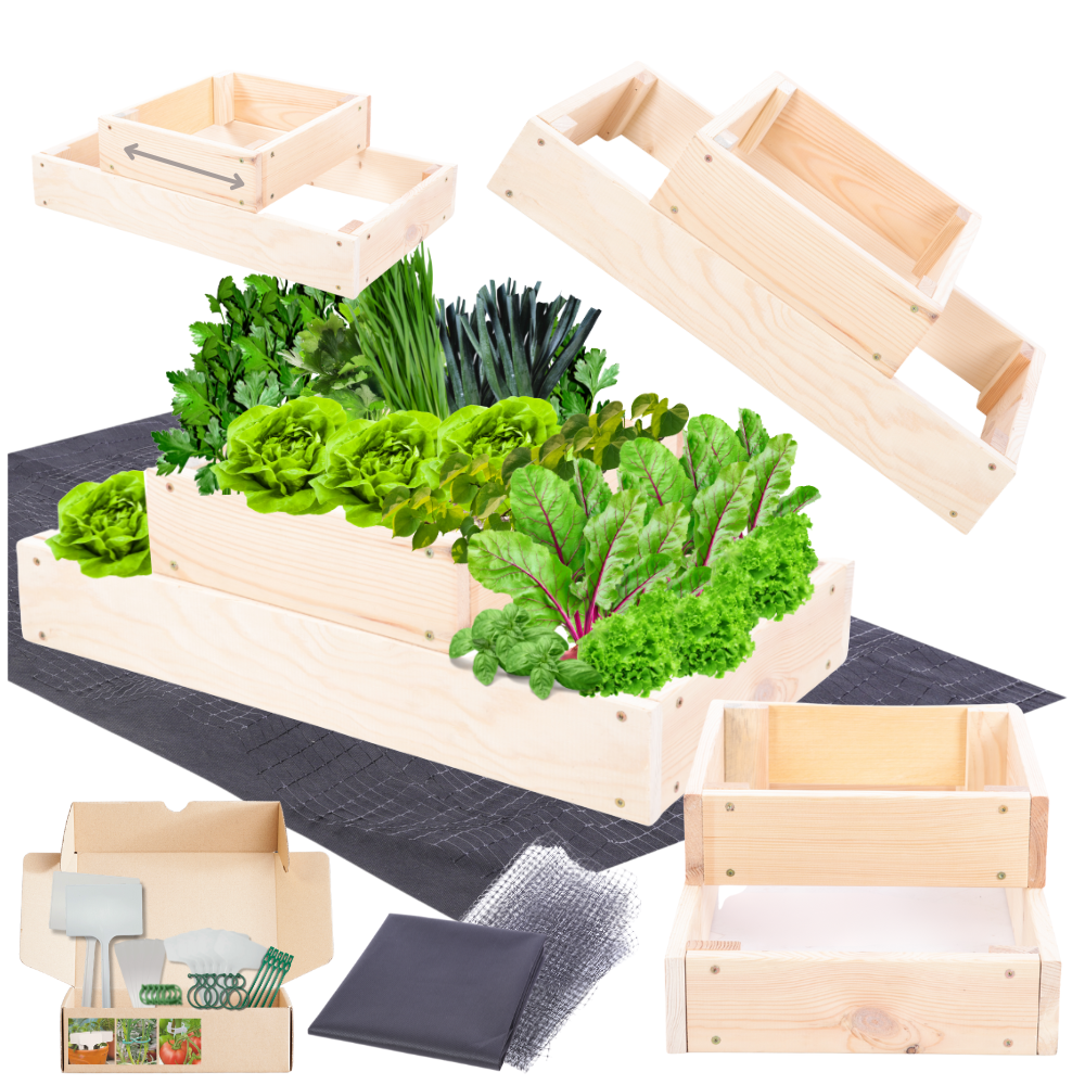 Drewniana kaskadowa REGULOWANA skrzynia na warzywniak - ZESTAW OGRODNIKA GRATIS - zapoznaj się z olbrzymią ilością dostępnych kombinacji bezpośrednio od polskiego producenta!