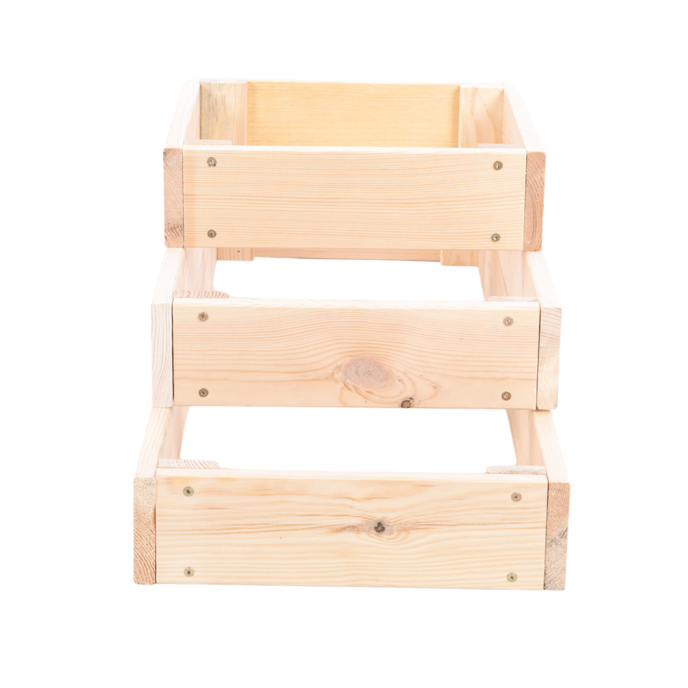 Oferujemy skrzynie na warzywa w różnych wysokościach (9, 18, 27, 36, 45, 54 cm), a także grządki z podziałem, kaskadowe – zwykłe i narożne oraz kaskadowe z regulowanymi piętrami. Wszystkie dostępne w czterech kolorach – naturalnym, przezroczystym, brązowym i szarym.