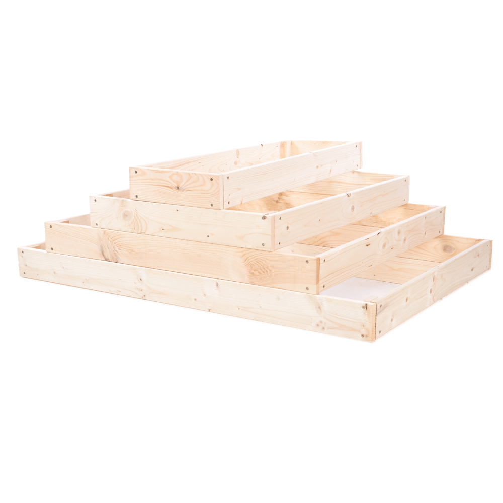 Oferujemy skrzynie na warzywa w różnych wysokościach (9, 18, 27, 36, 45, 54 cm), a także grządki z podziałem, kaskadowe – zwykłe i narożne oraz kaskadowe z regulowanymi piętrami. Wszystkie dostępne w czterech kolorach – naturalnym, przezroczystym, brązowym i szarym.