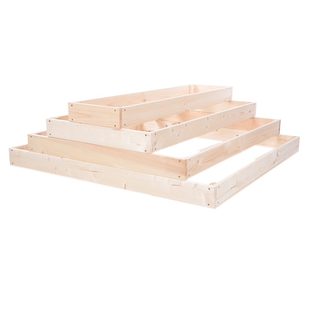 Oferujemy skrzynie na warzywa w różnych wysokościach (9, 18, 27, 36, 45, 54 cm), a także grządki z podziałem, kaskadowe – zwykłe i narożne oraz kaskadowe z regulowanymi piętrami. Wszystkie dostępne w czterech kolorach – naturalnym, przezroczystym, brązowym i szarym.