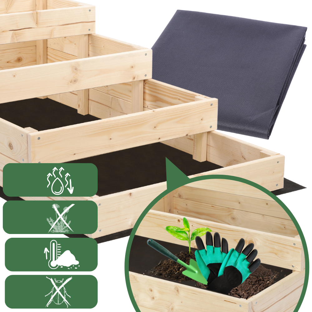 ✅ Pełny zestaw – w komplecie agrowłóknina, siatka na krety i akcesoria ogrodnicze. Możliwość dokupienia folii kubełkowej wraz z mocowaniami i ogrodniczej do zabezpieczenia drewna od wewnątrz przed wilgocią.