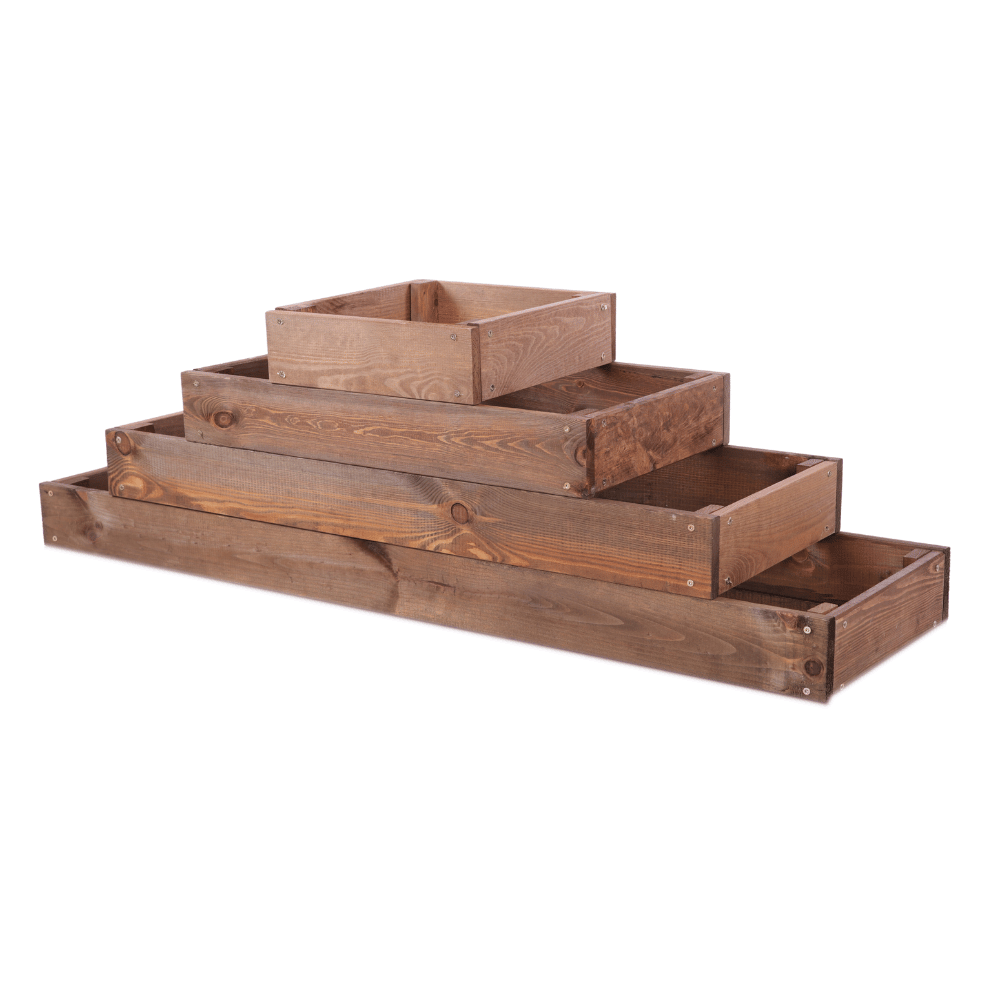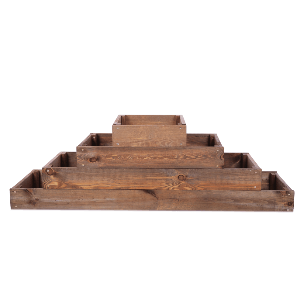 Oferujemy skrzynie na warzywa w różnych wysokościach (9, 18, 27, 36, 45, 54 cm), a także grządki z podziałem, kaskadowe – zwykłe i narożne oraz kaskadowe z regulowanymi piętrami. Wszystkie dostępne w czterech kolorach – naturalnym, przezroczystym, brązowym i szarym.