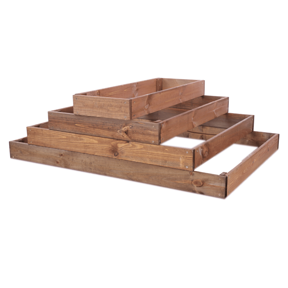 Oferujemy skrzynie na warzywa w różnych wysokościach (9, 18, 27, 36, 45, 54 cm), a także grządki z podziałem, kaskadowe – zwykłe i narożne oraz kaskadowe z regulowanymi piętrami. Wszystkie dostępne w czterech kolorach – naturalnym, przezroczystym, brązowym i szarym.