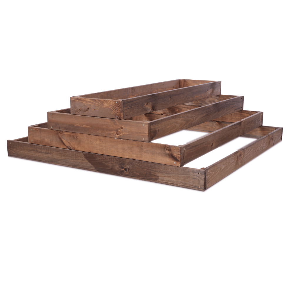 Oferujemy skrzynie na warzywa w różnych wysokościach (9, 18, 27, 36, 45, 54 cm), a także grządki z podziałem, kaskadowe – zwykłe i narożne oraz kaskadowe z regulowanymi piętrami. Wszystkie dostępne w czterech kolorach – naturalnym, przezroczystym, brązowym i szarym.