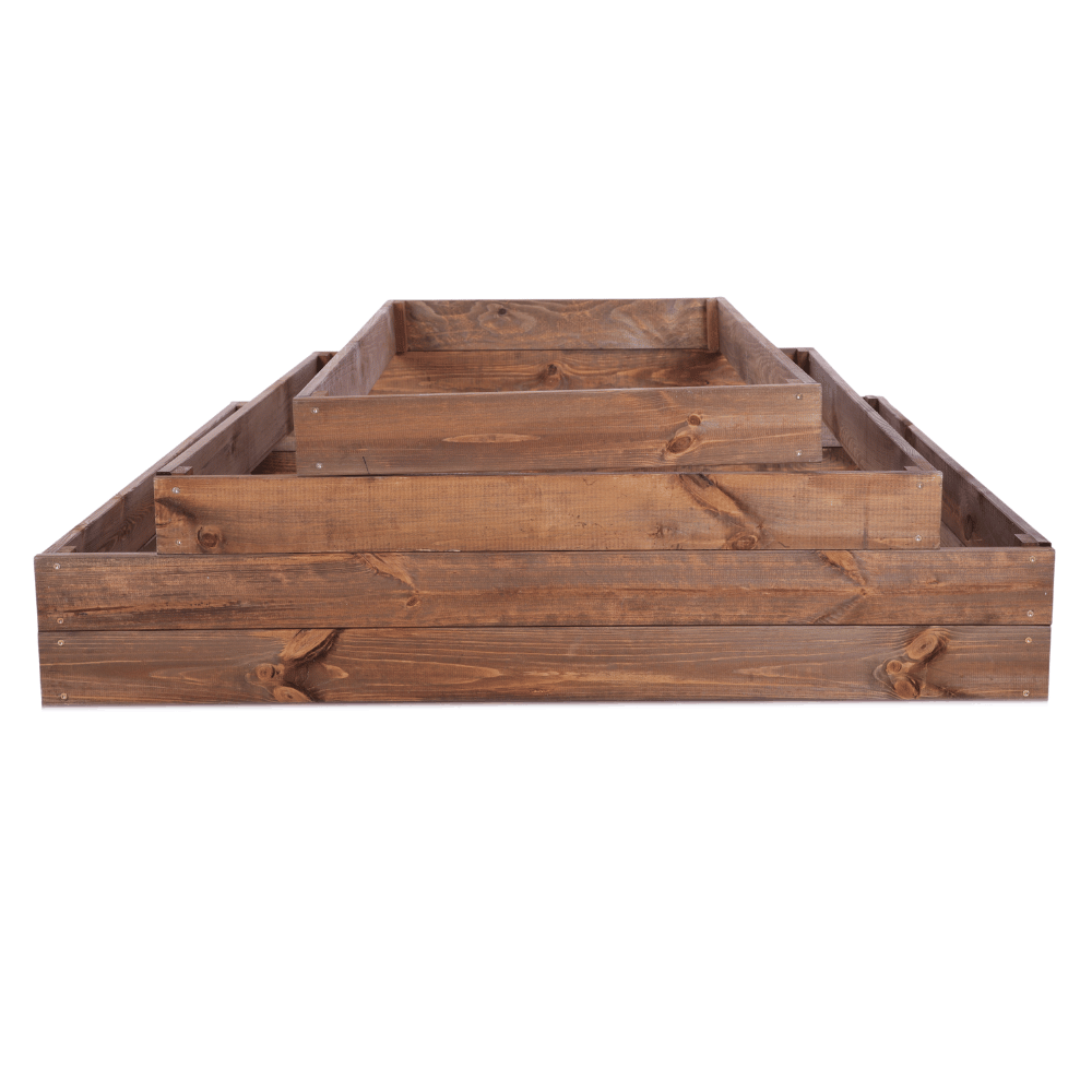 Oferujemy skrzynie na warzywa w różnych wysokościach (9, 18, 27, 36, 45, 54 cm), a także grządki z podziałem, kaskadowe – zwykłe i narożne oraz kaskadowe z regulowanymi piętrami. Wszystkie dostępne w czterech kolorach – naturalnym, przezroczystym, brązowym i szarym.