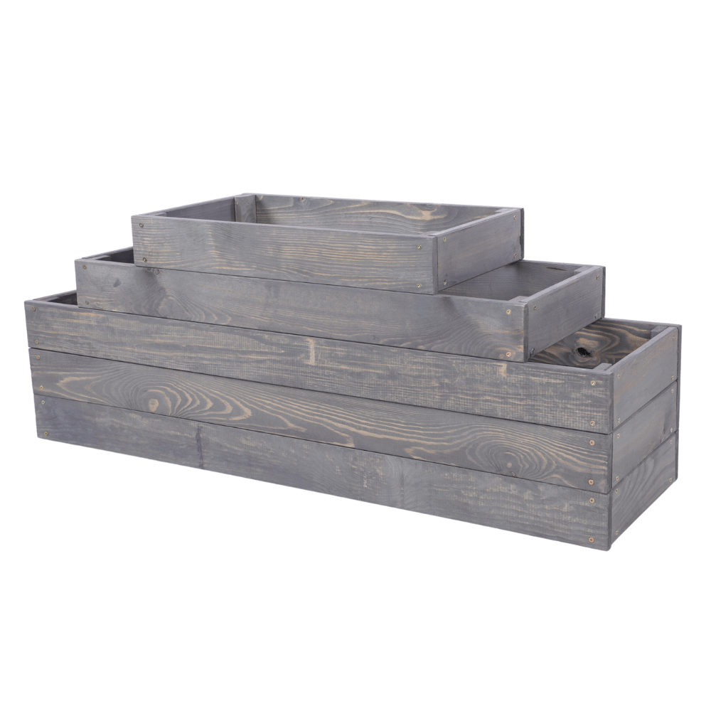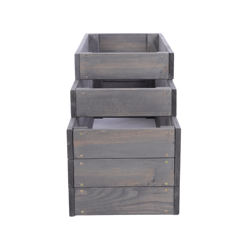 Oferujemy skrzynie na warzywa w różnych wysokościach (9, 18, 27, 36, 45, 54 cm), a także grządki z podziałem, kaskadowe – zwykłe i narożne oraz kaskadowe z regulowanymi piętrami. Wszystkie dostępne w czterech kolorach – naturalnym, przezroczystym, brązowym i szarym.