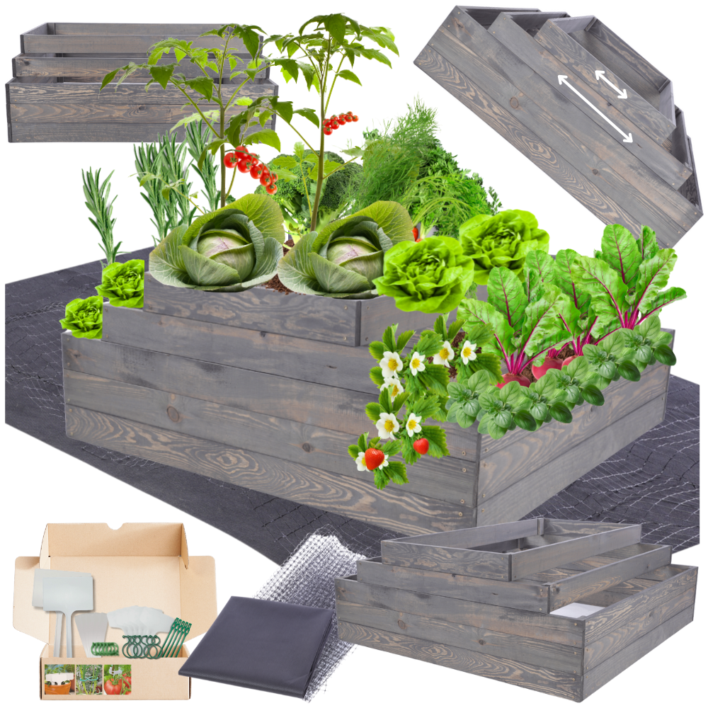Drewniana kaskadowa REGULOWANA skrzynia na warzywniak - ZESTAW OGRODNIKA GRATIS - zapoznaj się z olbrzymią ilością dostępnych kombinacji bezpośrednio od polskiego producenta!