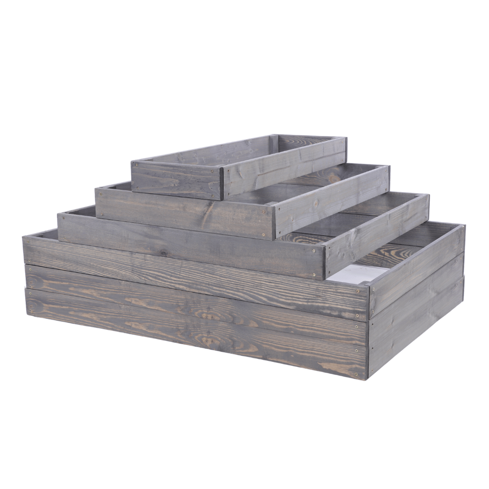 Oferujemy skrzynie na warzywa w różnych wysokościach (9, 18, 27, 36, 45, 54 cm), a także grządki z podziałem, kaskadowe – zwykłe i narożne oraz kaskadowe z regulowanymi piętrami. Wszystkie dostępne w czterech kolorach – naturalnym, przezroczystym, brązowym i szarym.