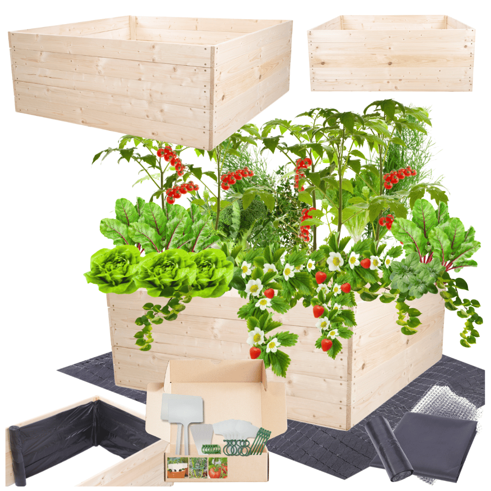 ✅ Pełny zestaw – w komplecie agrowłóknina, siatka na krety, folia i akcesoria ogrodnicze. Możliwość dokupienia folii kubełkowej wraz z mocowaniami do zabezpieczenia drewna od wewnątrz przed wilgocią.